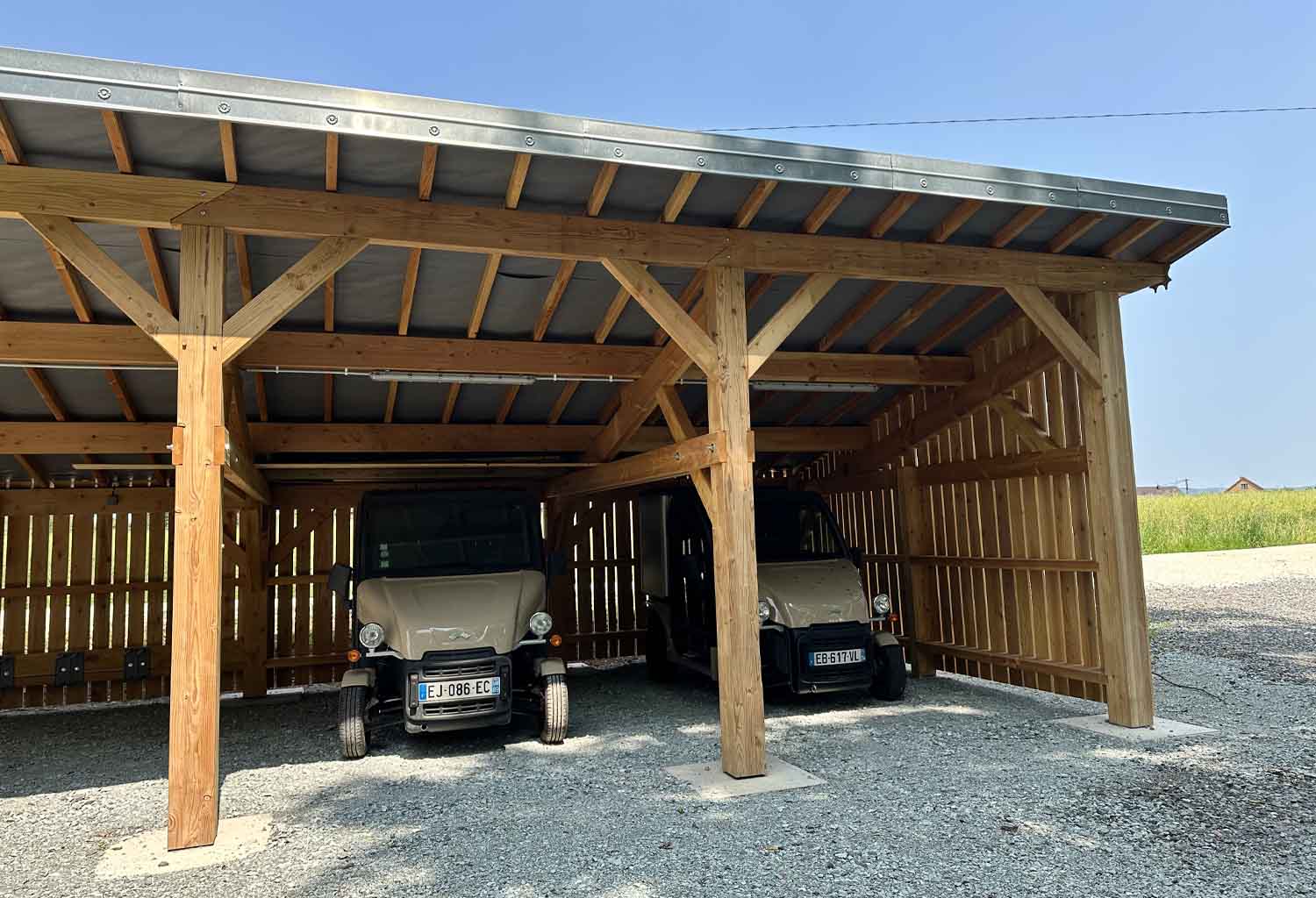 Notre domaine met à votre disposition plusieurs services pour faciliter votre séjour : un carport pour abriter votre véhicule, des sanitaires en libre accès, une voiturette pour transporter vos bagages en toute simplicité, ainsi que des bornes de recharge pour véhicules électriques. Tout est pensé pour votre confort.